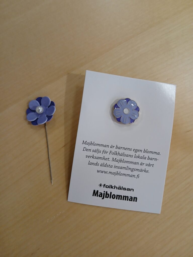 Nu finns Folkhälsans majblomma till salu på Luckan Åbo! Majblomsnålen kostar 2 euro och pinsen 5 euro. Intäkterna från majblomsförsäljningen går till Folkhälsans hälsofrämjande arbete bland barn, som t.ex. sim- och livräddningsundervisning. Majblomman säljs t.o.m. 6.5. Du kan även köpa majblomman via Folkhälsans webbsida.
