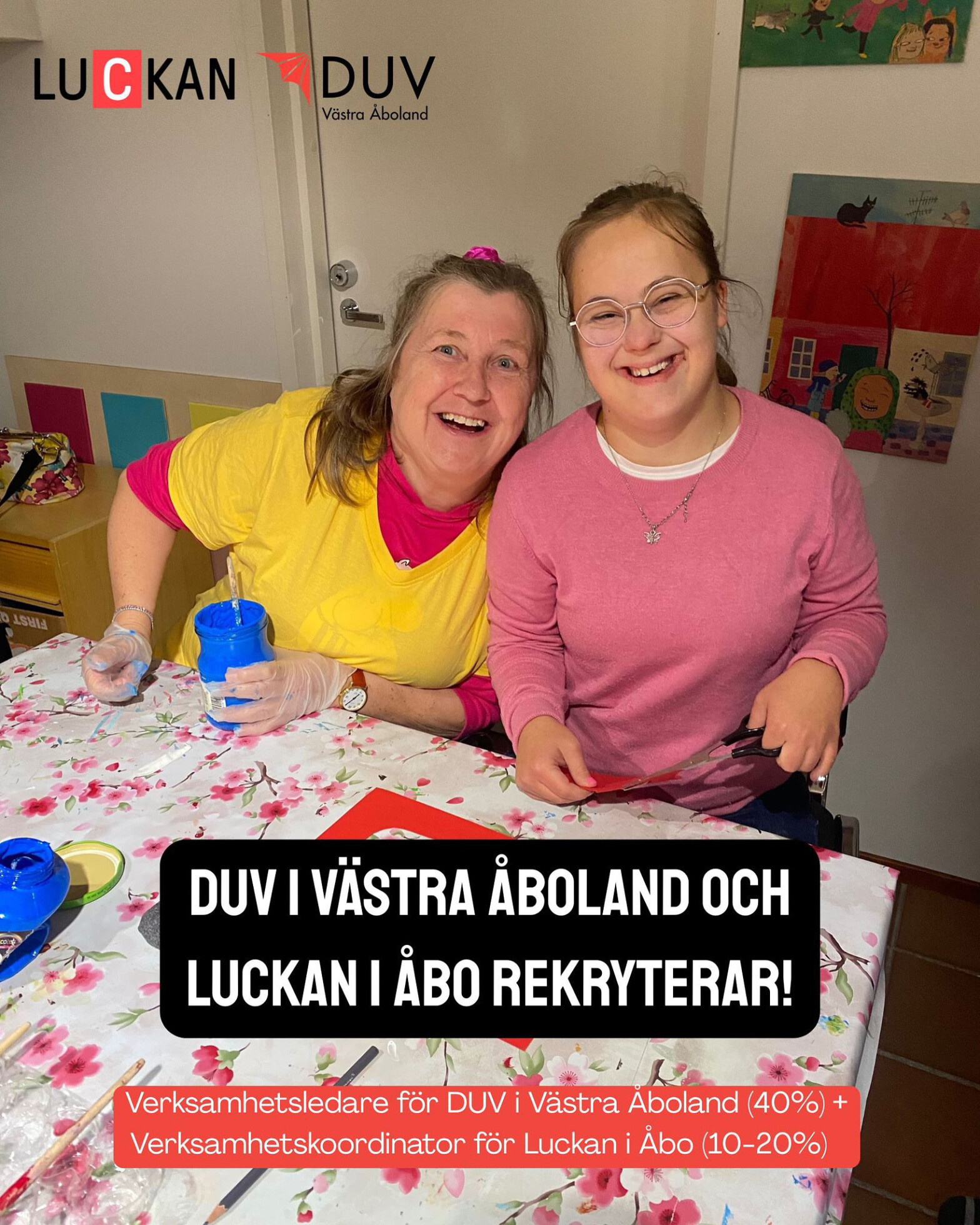 Söker du ett mångsidigt och flexibelt arbete där du får göra skillnad varje dag? DUV i Västra Åboland och Luckan i Åbo/Åbo svenska föreningsråd (ÅSFR) lediganslår nu en kombinerad befattning som verksamhetsledare och -koordinator! Anställningen är en deltidsbefattning som omfattar 40% arbete som verksamhetsledare för DUV och 10-20% som koordinator för Luckan/ÅSFR.