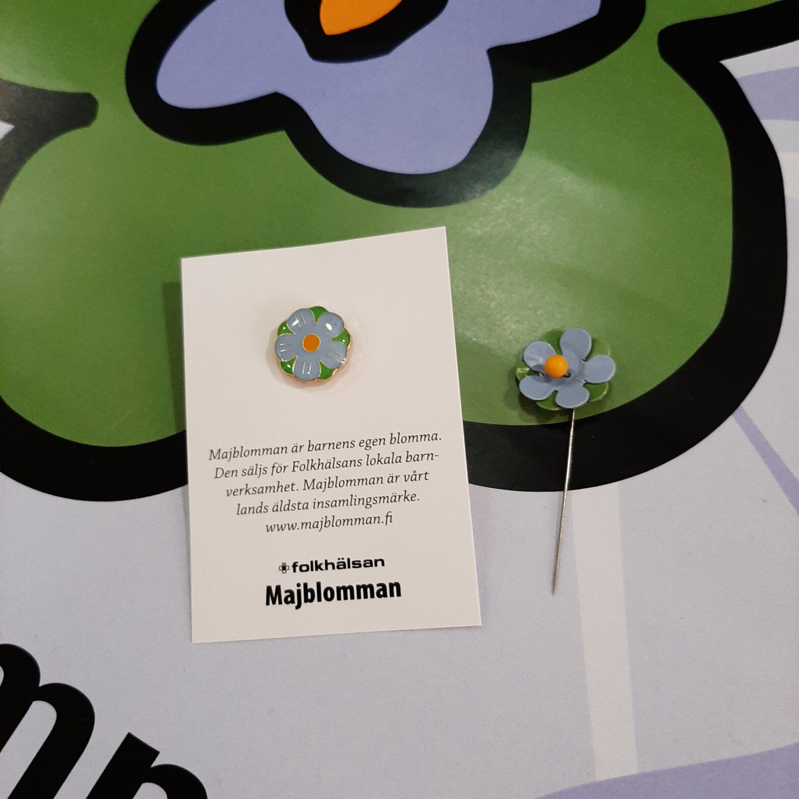 Majblomsnålen kostar 2 euro och pinsen 4 euro. Intäkterna från majblomsförsäljningen går till Folkhälsans hälsofrämjande arbete bland barn, som t.ex. sim- och livräddningsundervisning.