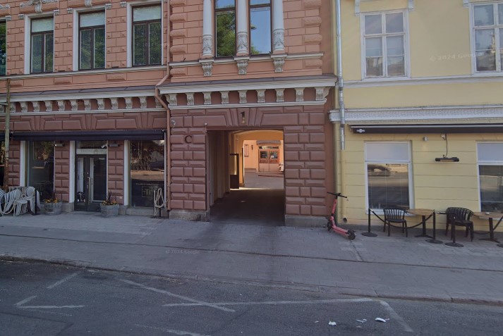 Gillesgårdens huvudingång, G-dörren, finns en bit till vänster på innergården (inte på bild).